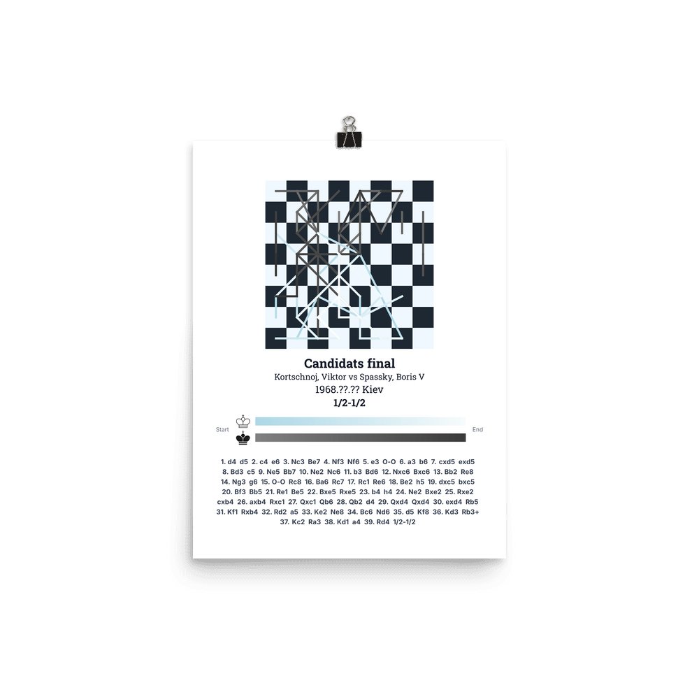 Museum-quality poster on thick, durable matte paper. A sharp, clean look for any chess visualisation.