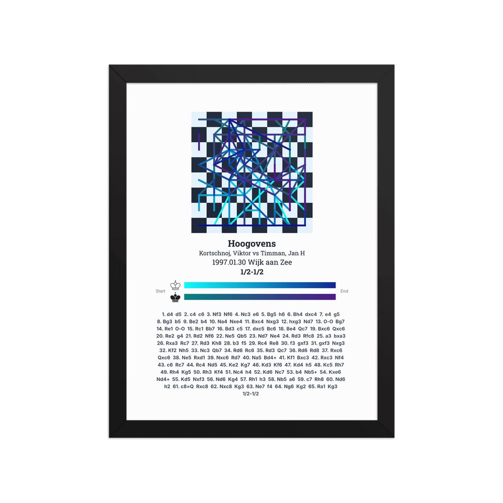Museum-quality poster on thick, durable matte paper. A sharp, clean look for any chess visualisation.