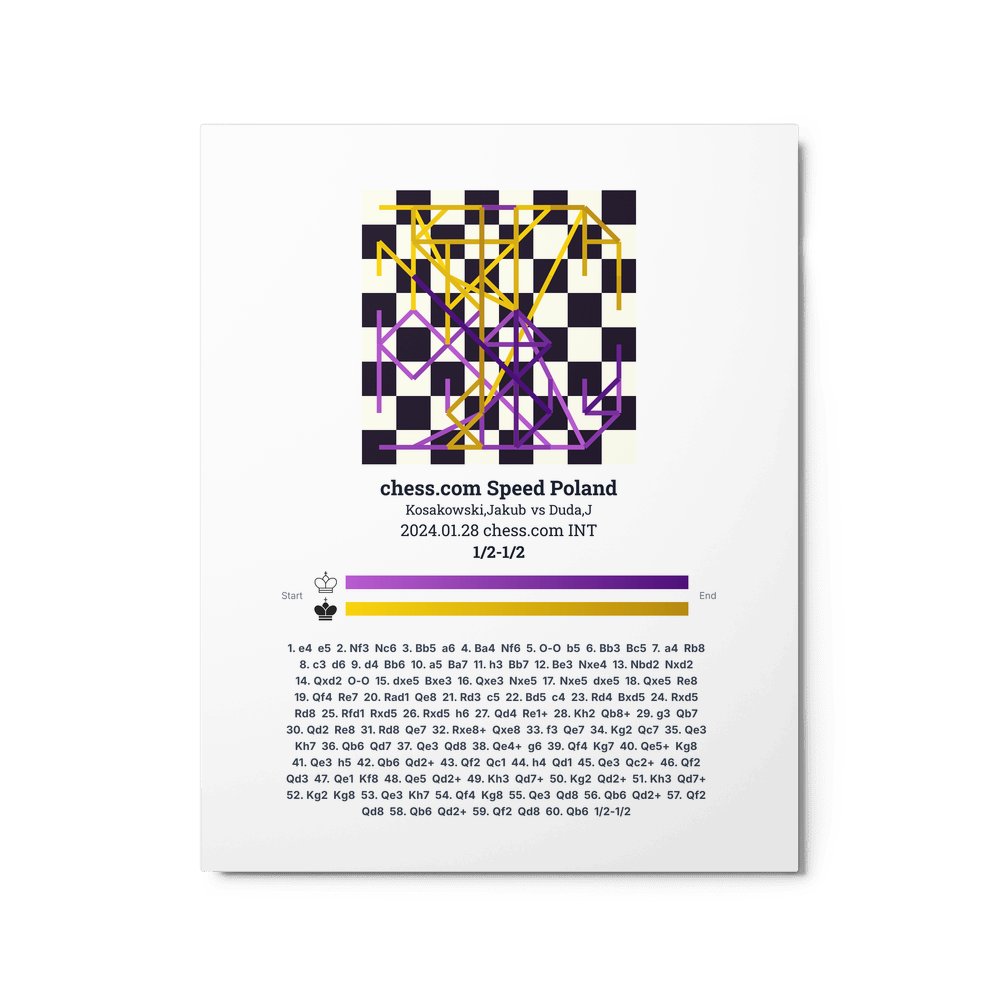 Museum-quality poster on thick, durable matte paper. A sharp, clean look for any chess visualisation.