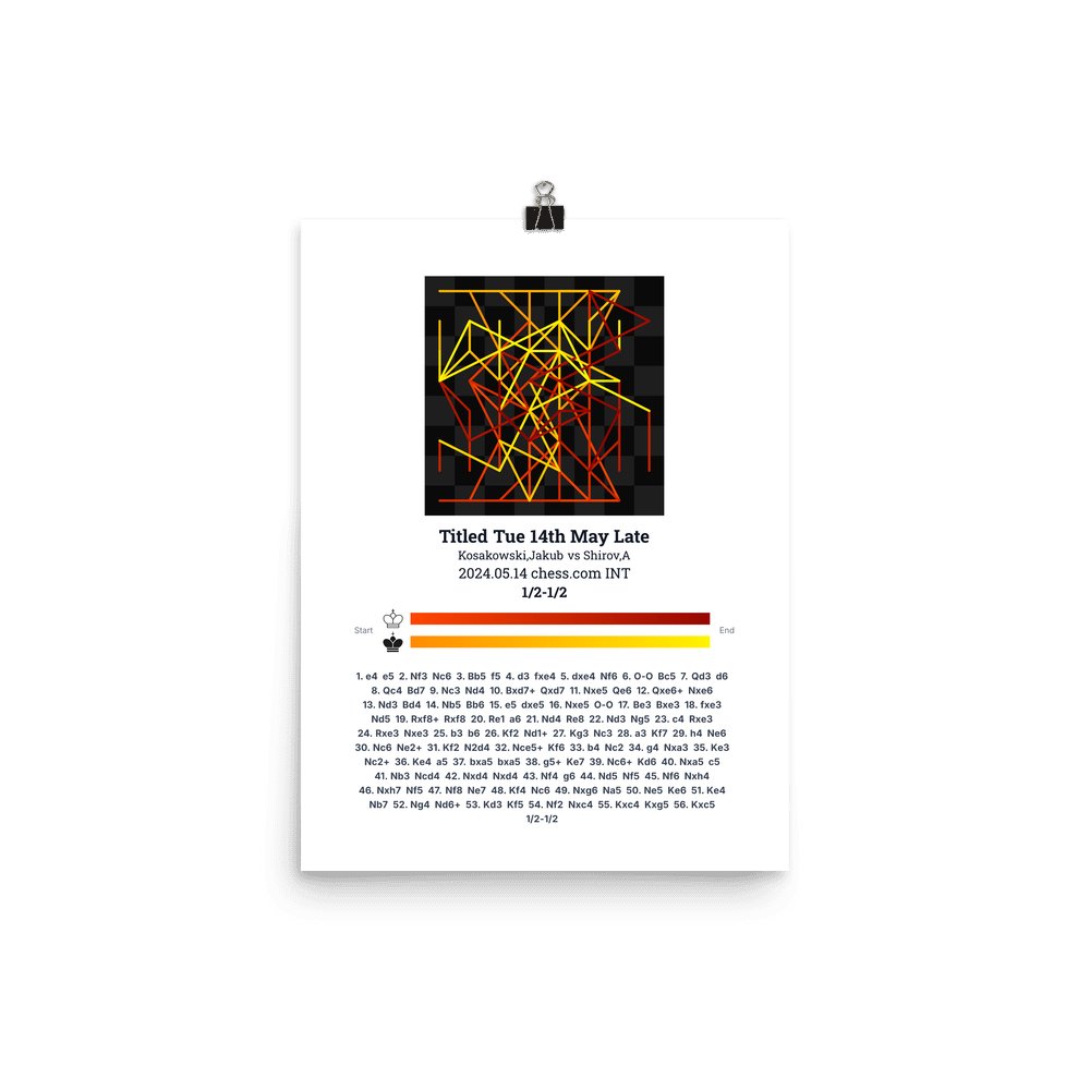 Museum-quality poster on thick, durable matte paper. A sharp, clean look for any chess visualisation.