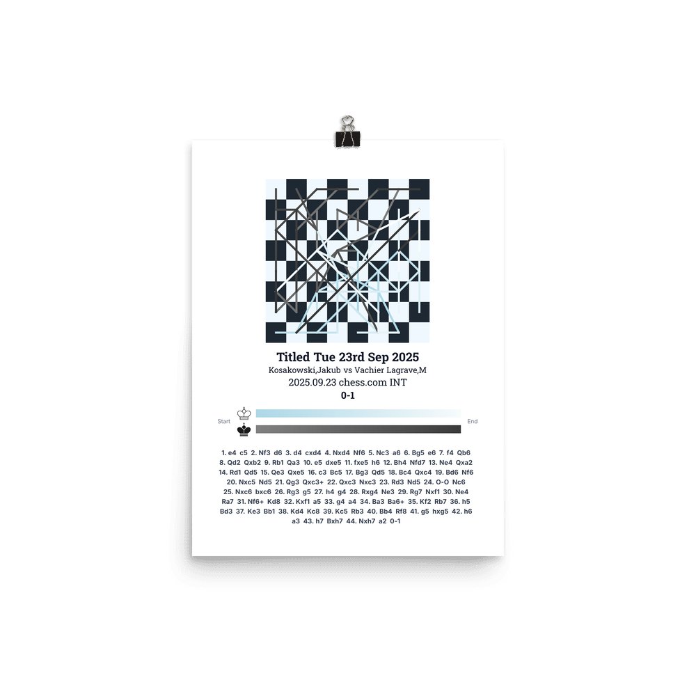 Museum-quality poster on thick, durable matte paper. A sharp, clean look for any chess visualisation.