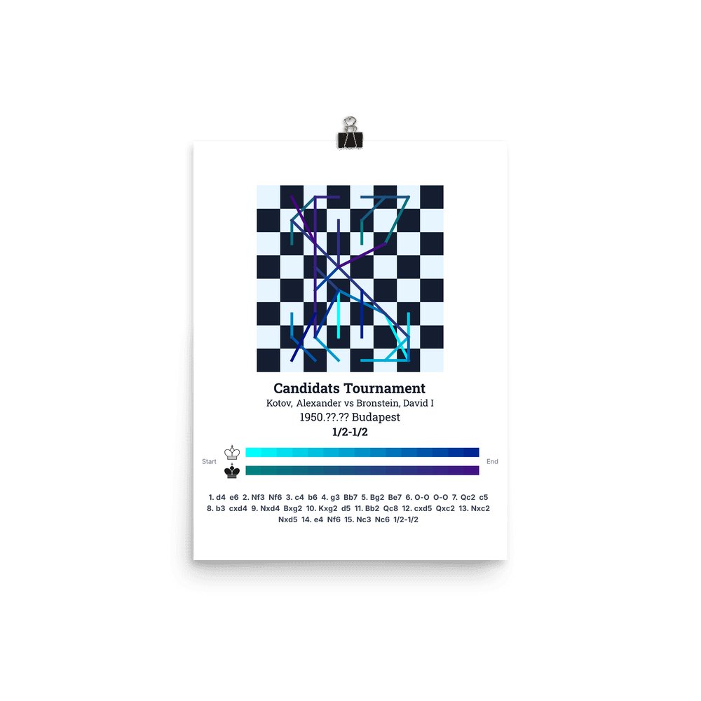 Museum-quality poster on thick, durable matte paper. A sharp, clean look for any chess visualisation.
