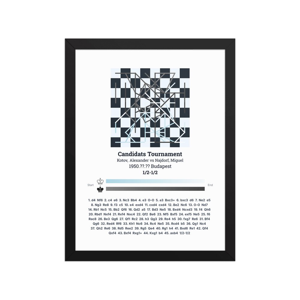 Museum-quality poster on thick, durable matte paper. A sharp, clean look for any chess visualisation.