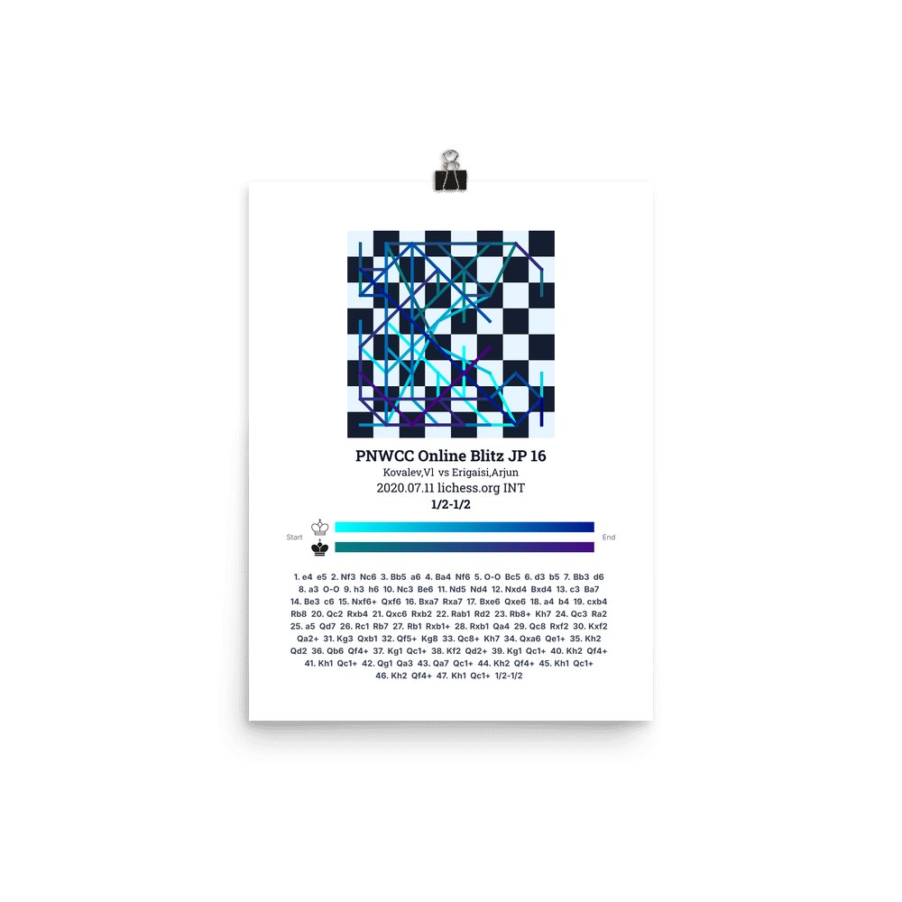 Museum-quality poster on thick, durable matte paper. A sharp, clean look for any chess visualisation.