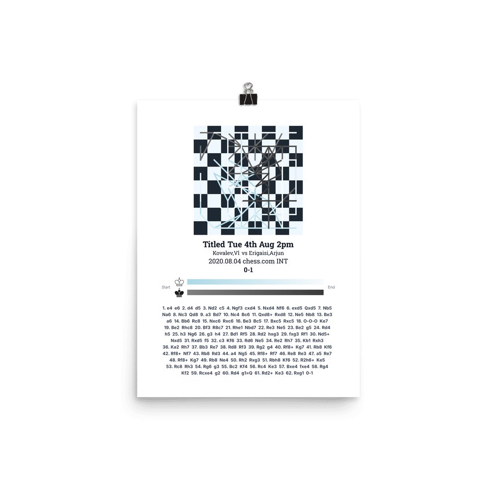 Museum-quality poster on thick, durable matte paper. A sharp, clean look for any chess visualisation.