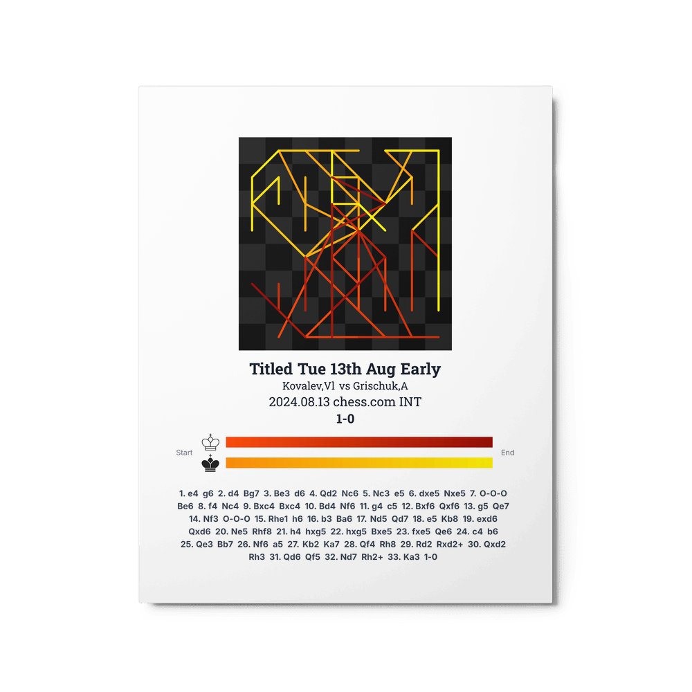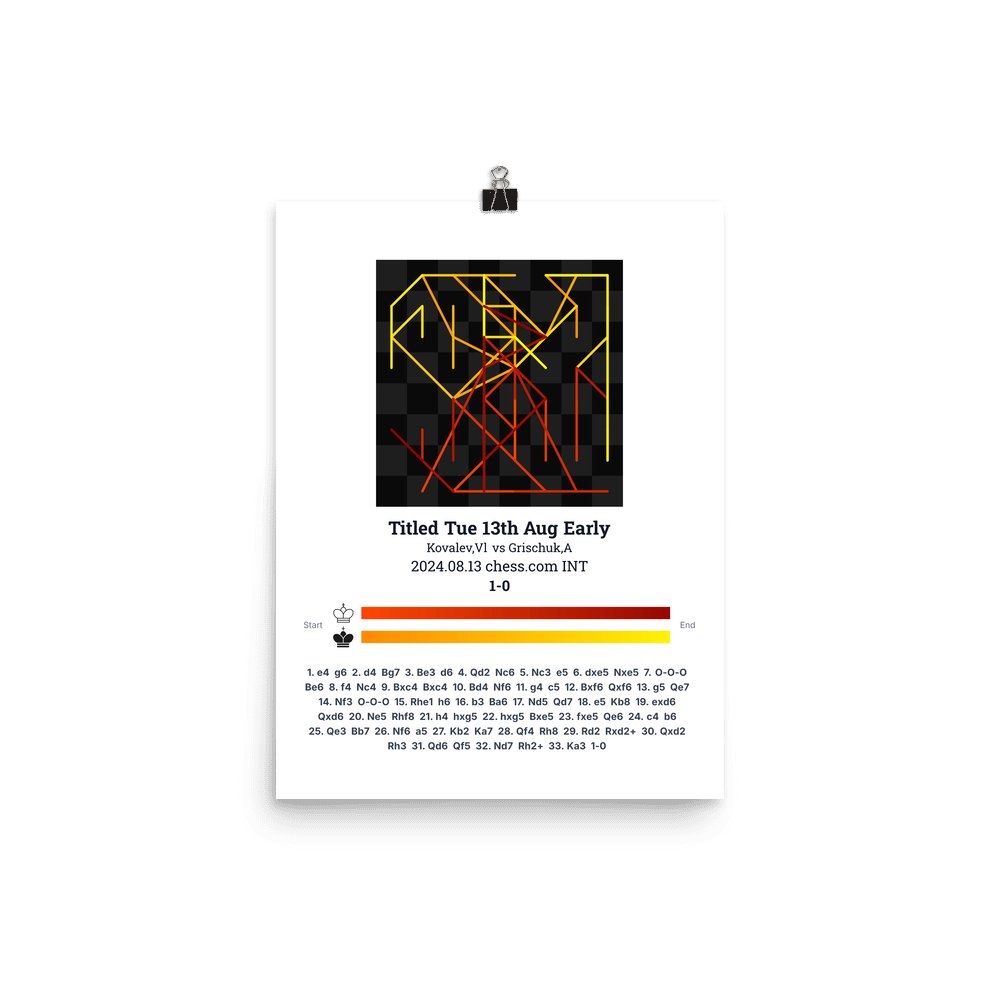 Museum-quality poster on thick, durable matte paper. A sharp, clean look for any chess visualisation.