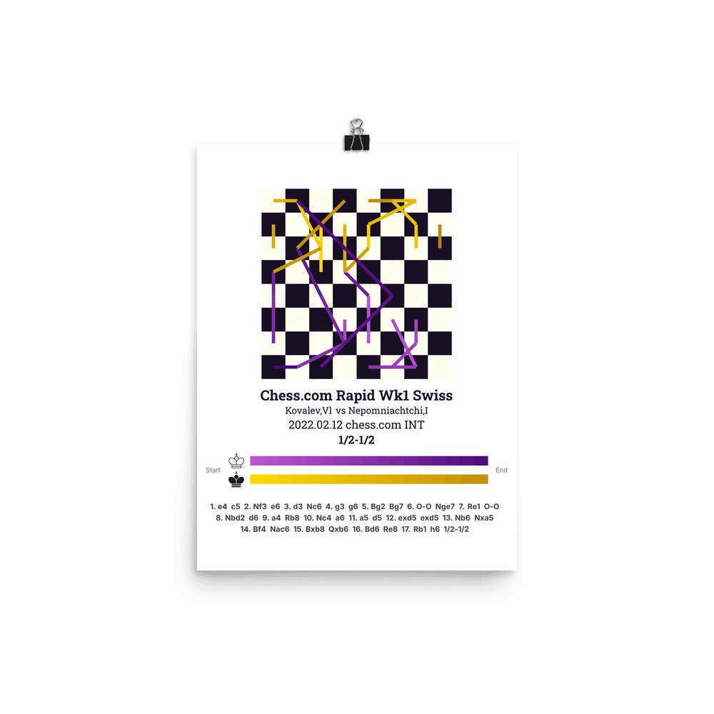 Museum-quality poster on thick, durable matte paper. A sharp, clean look for any chess visualisation.