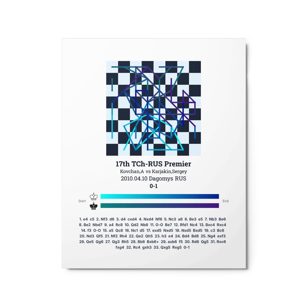 Museum-quality poster on thick, durable matte paper. A sharp, clean look for any chess visualisation.