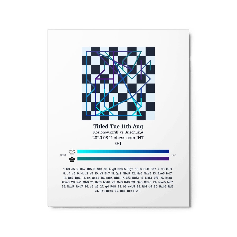Museum-quality poster on thick, durable matte paper. A sharp, clean look for any chess visualisation.