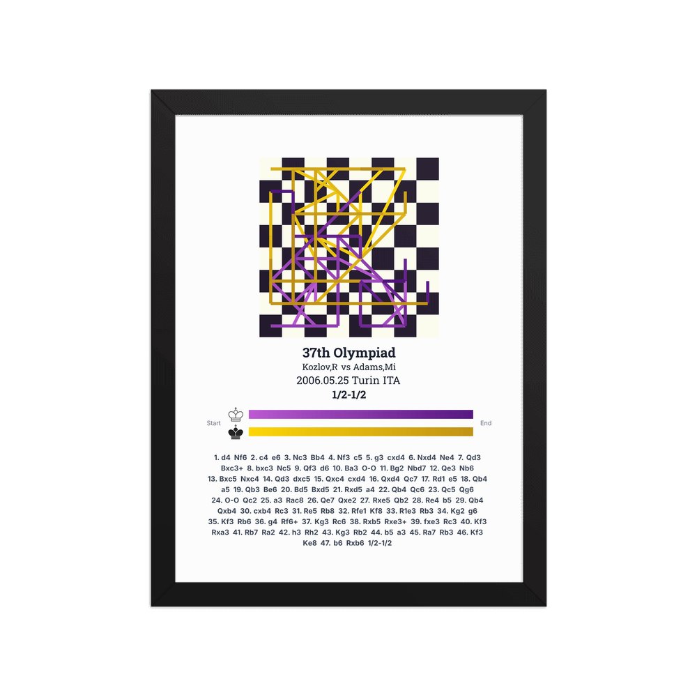 Museum-quality poster on thick, durable matte paper. A sharp, clean look for any chess visualisation.