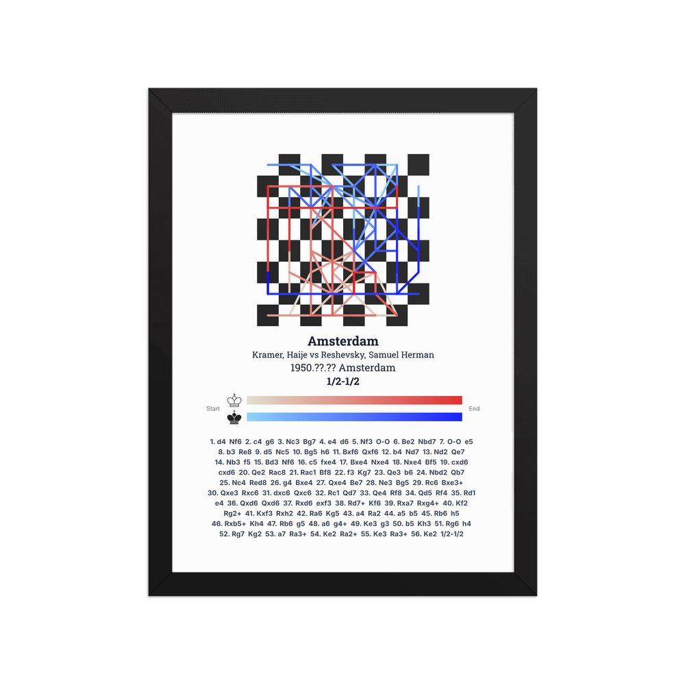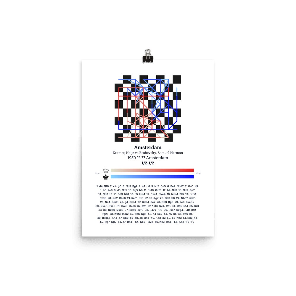 Museum-quality poster on thick, durable matte paper. A sharp, clean look for any chess visualisation.