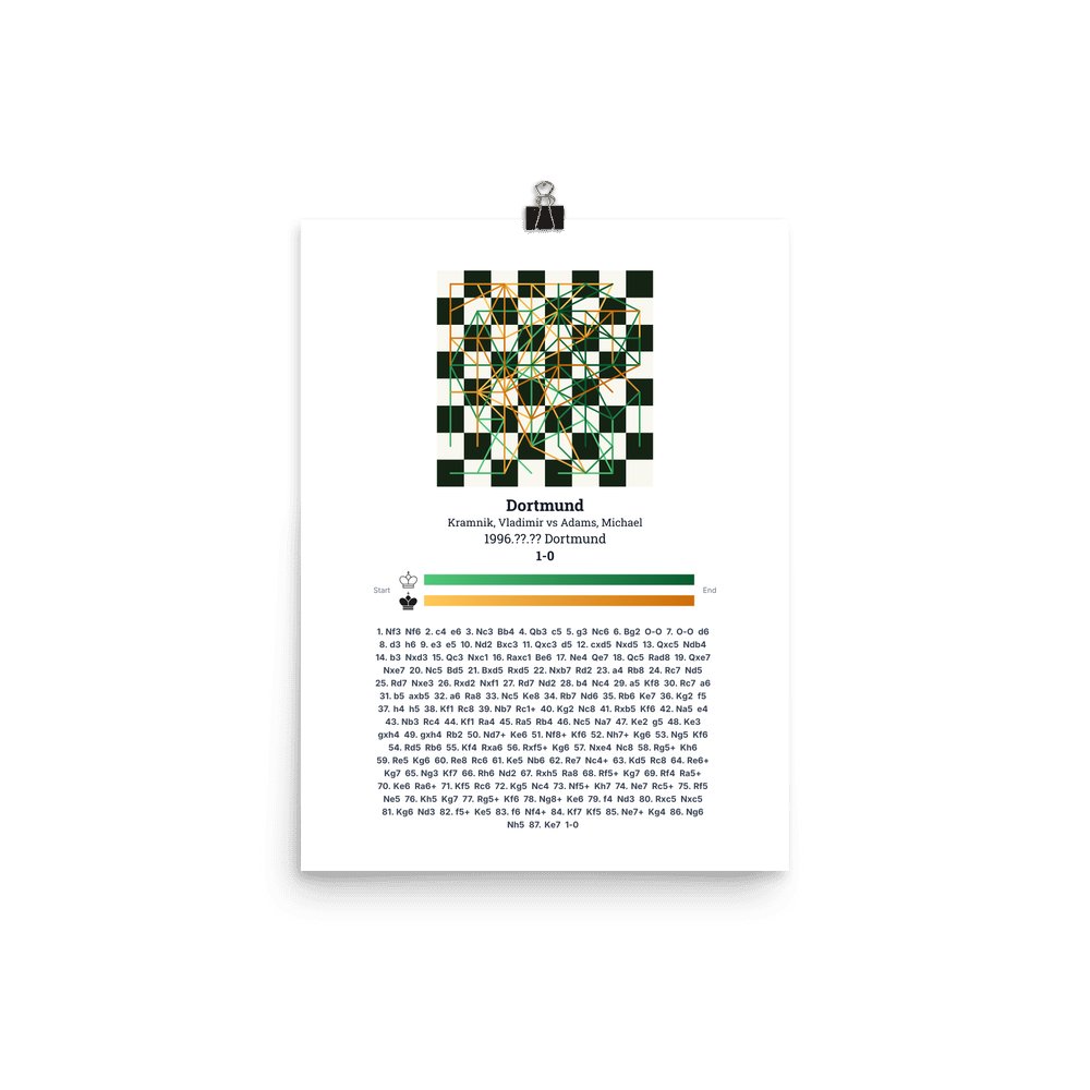 Museum-quality poster on thick, durable matte paper. A sharp, clean look for any chess visualisation.