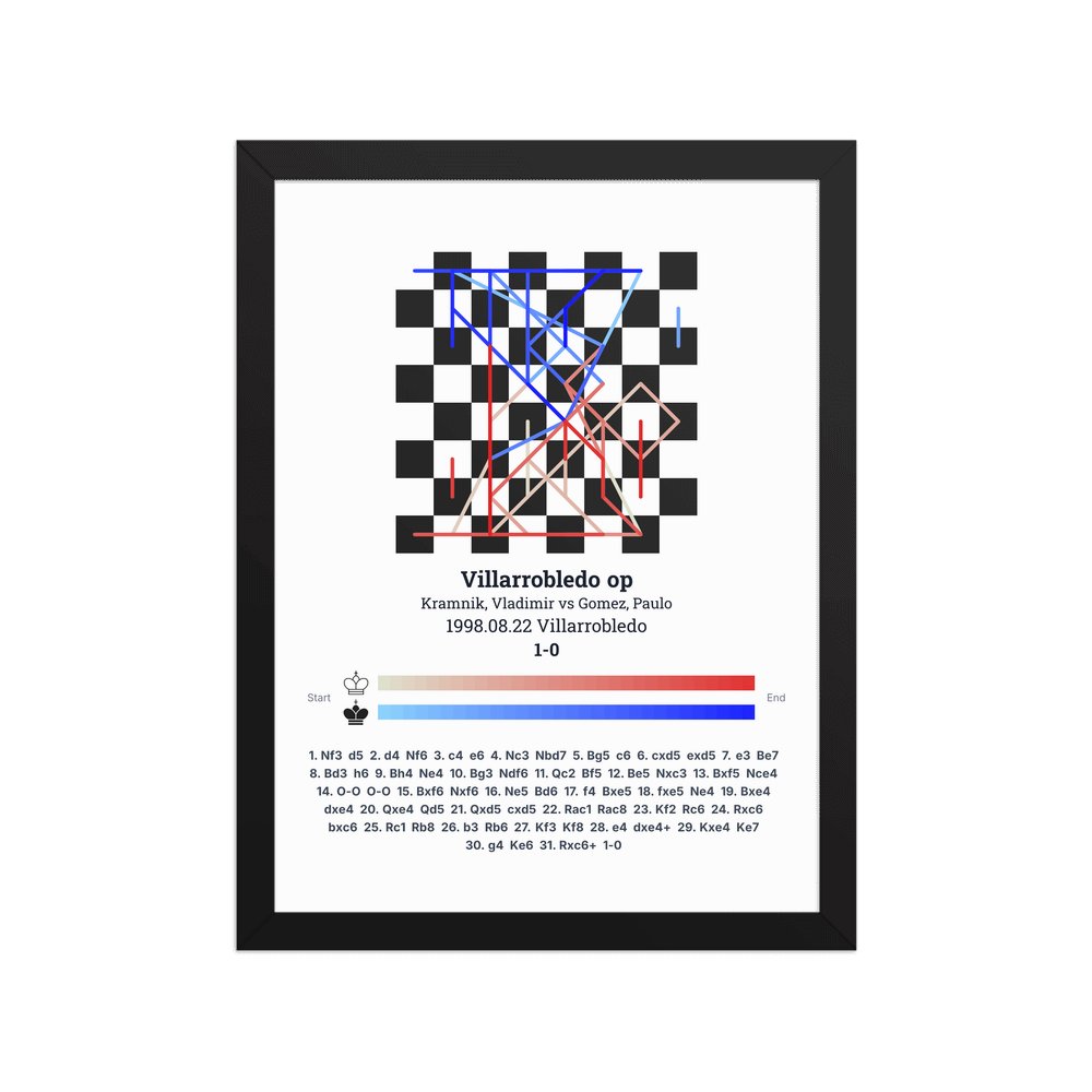 Museum-quality poster on thick, durable matte paper. A sharp, clean look for any chess visualisation.