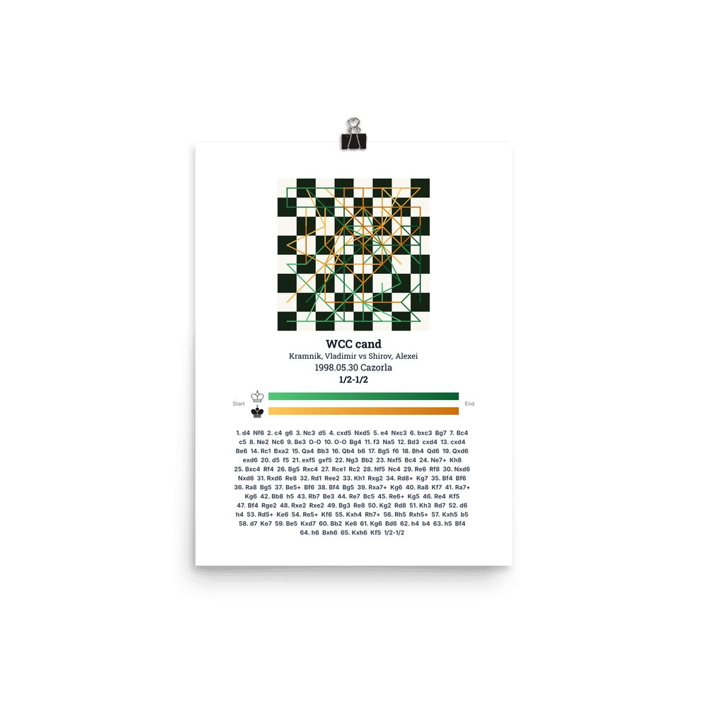 Museum-quality poster on thick, durable matte paper. A sharp, clean look for any chess visualisation.