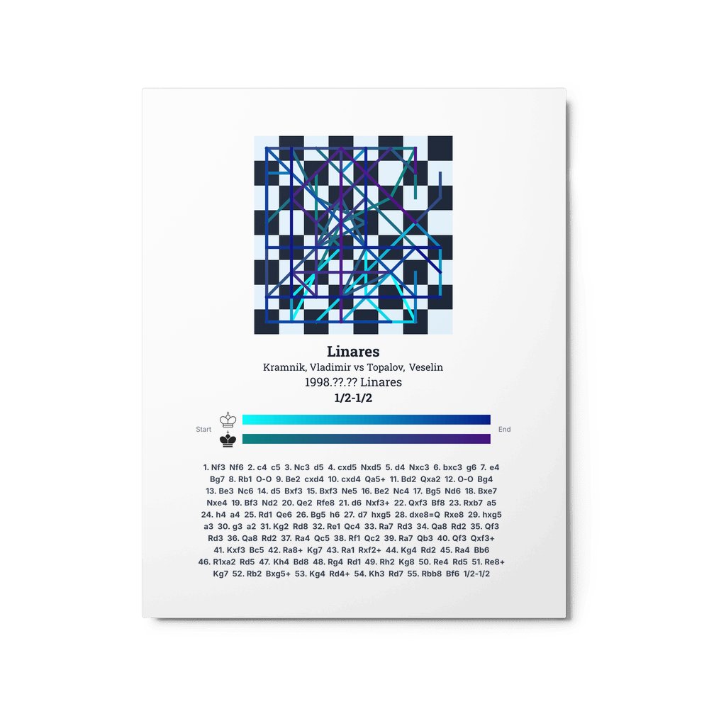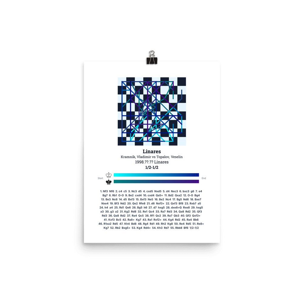 Museum-quality poster on thick, durable matte paper. A sharp, clean look for any chess visualisation.