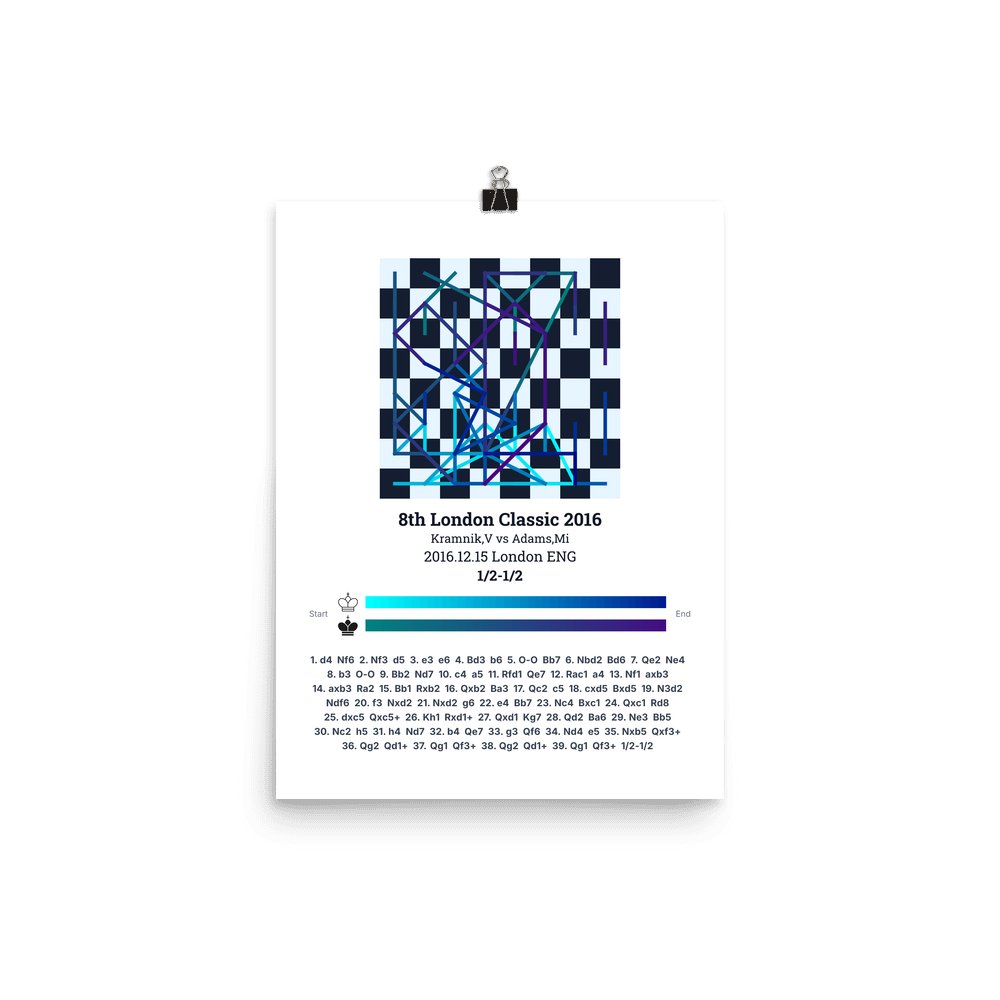 Museum-quality poster on thick, durable matte paper. A sharp, clean look for any chess visualisation.