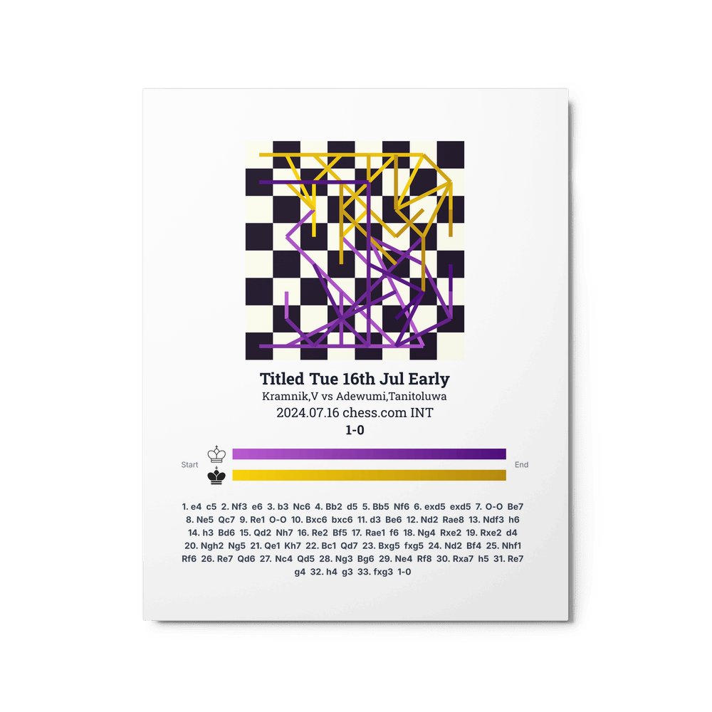 Museum-quality poster on thick, durable matte paper. A sharp, clean look for any chess visualisation.