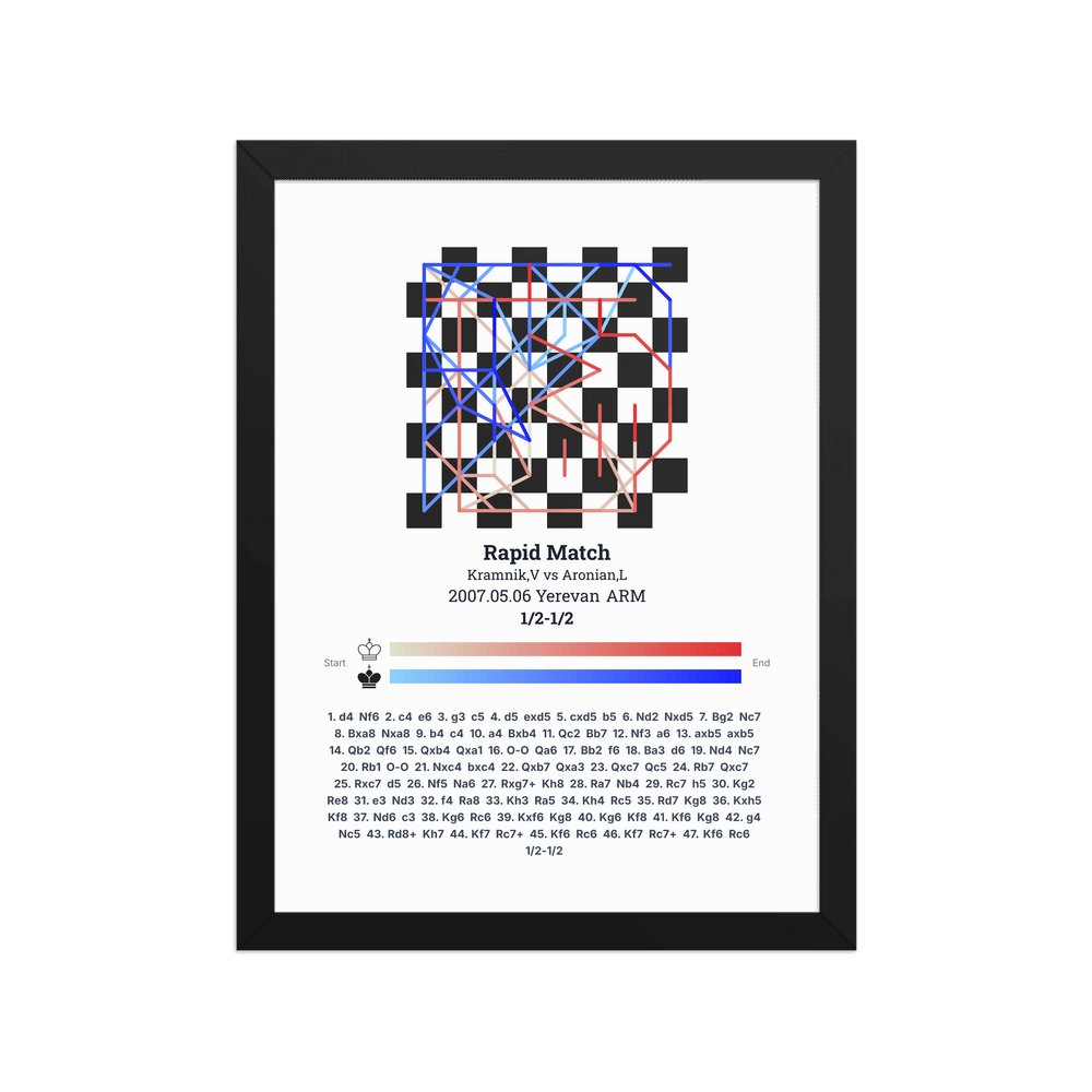 Museum-quality poster on thick, durable matte paper. A sharp, clean look for any chess visualisation.