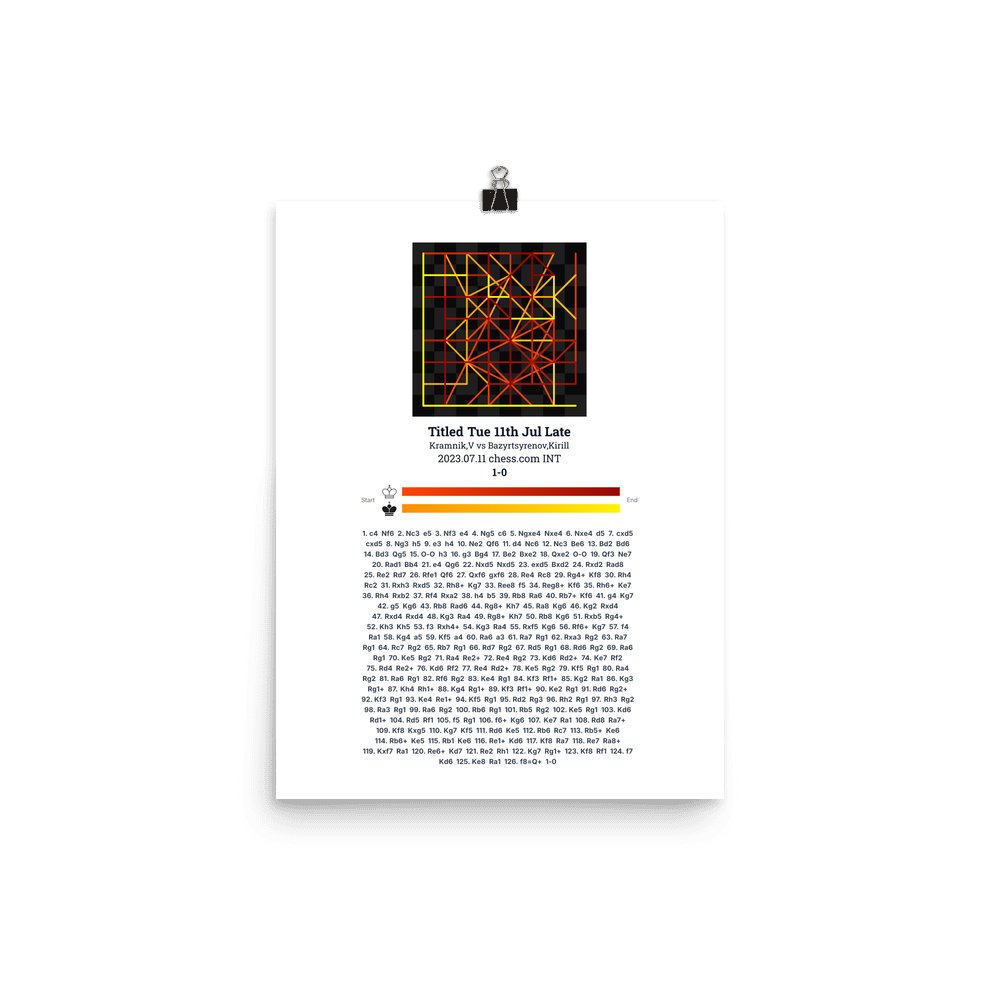Museum-quality poster on thick, durable matte paper. A sharp, clean look for any chess visualisation.