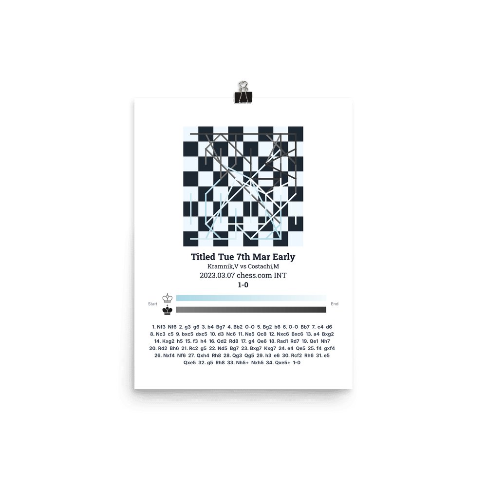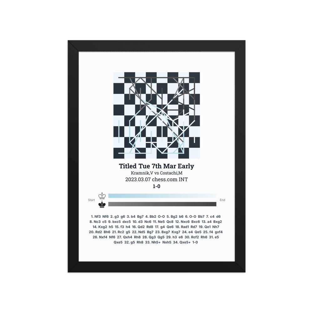 Museum-quality poster on thick, durable matte paper. A sharp, clean look for any chess visualisation.