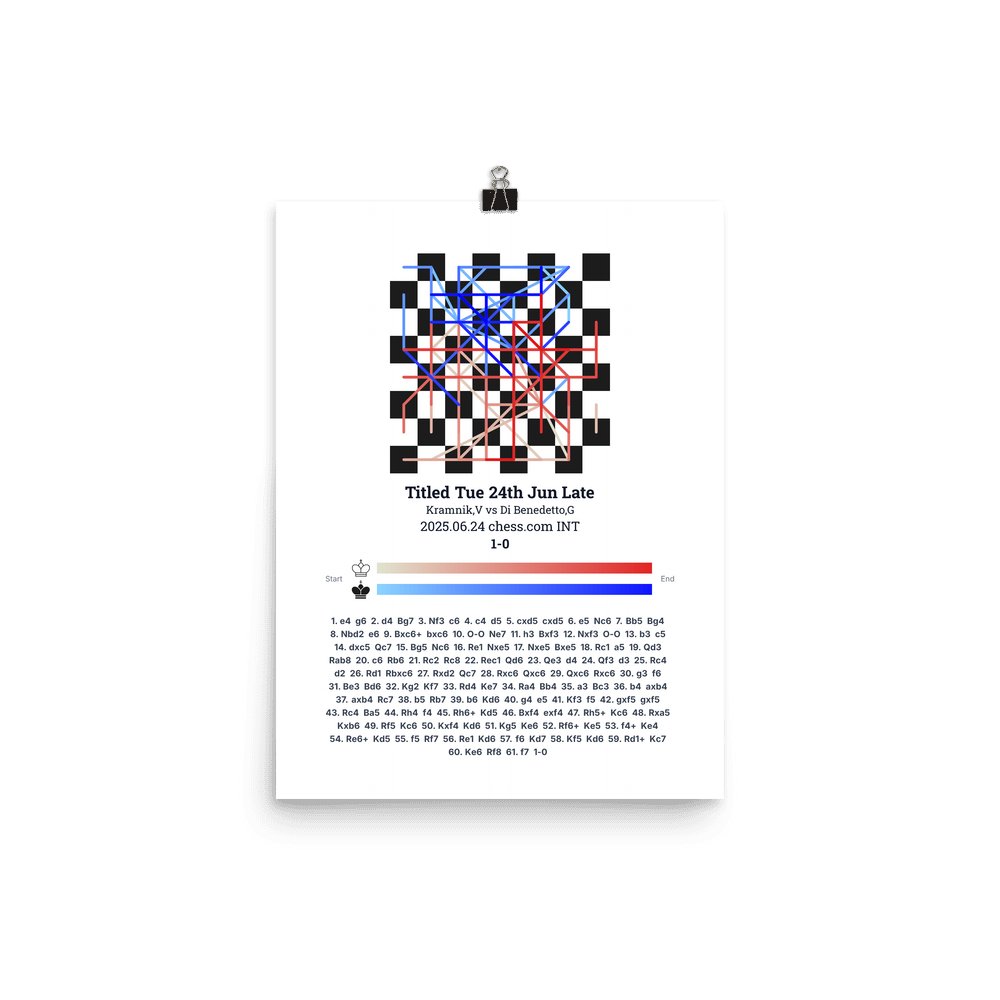 Museum-quality poster on thick, durable matte paper. A sharp, clean look for any chess visualisation.