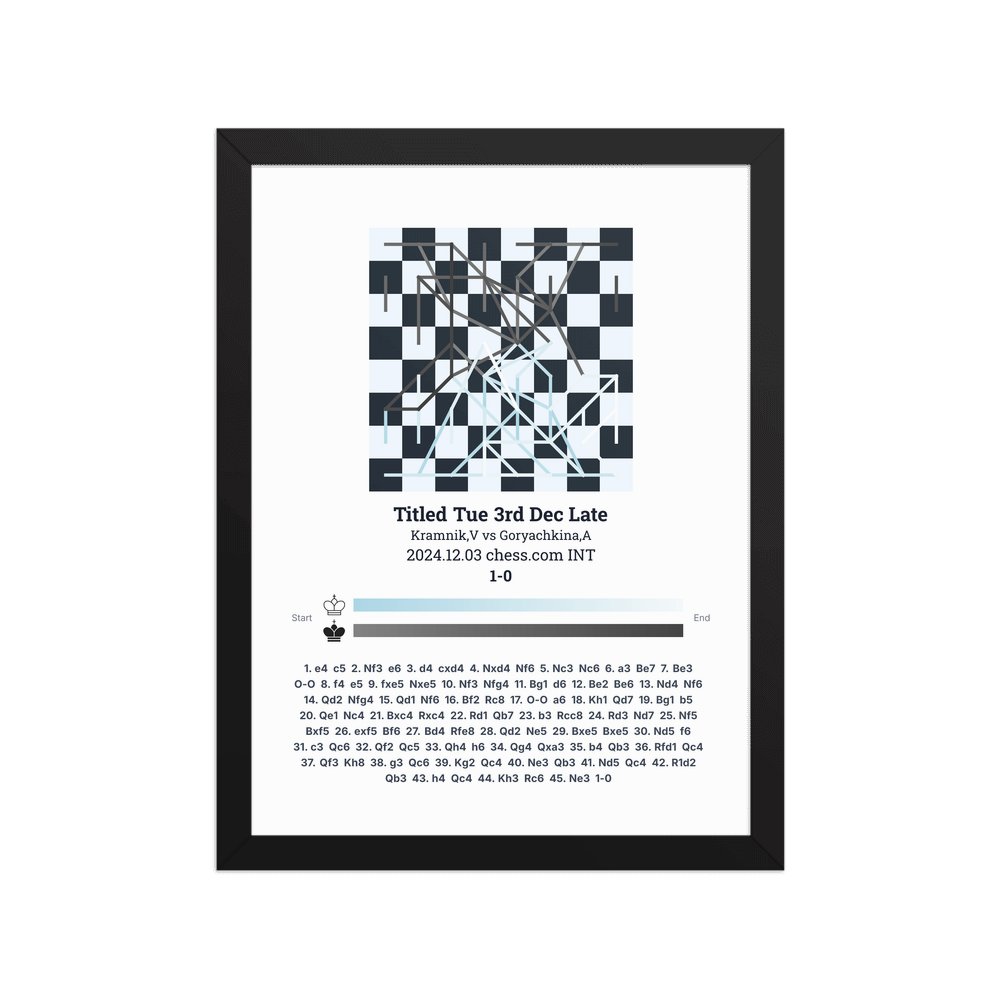 Museum-quality poster on thick, durable matte paper. A sharp, clean look for any chess visualisation.