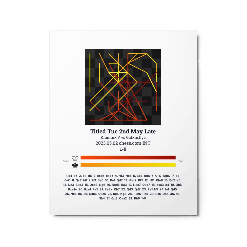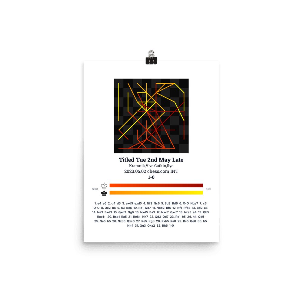 Museum-quality poster on thick, durable matte paper. A sharp, clean look for any chess visualisation.