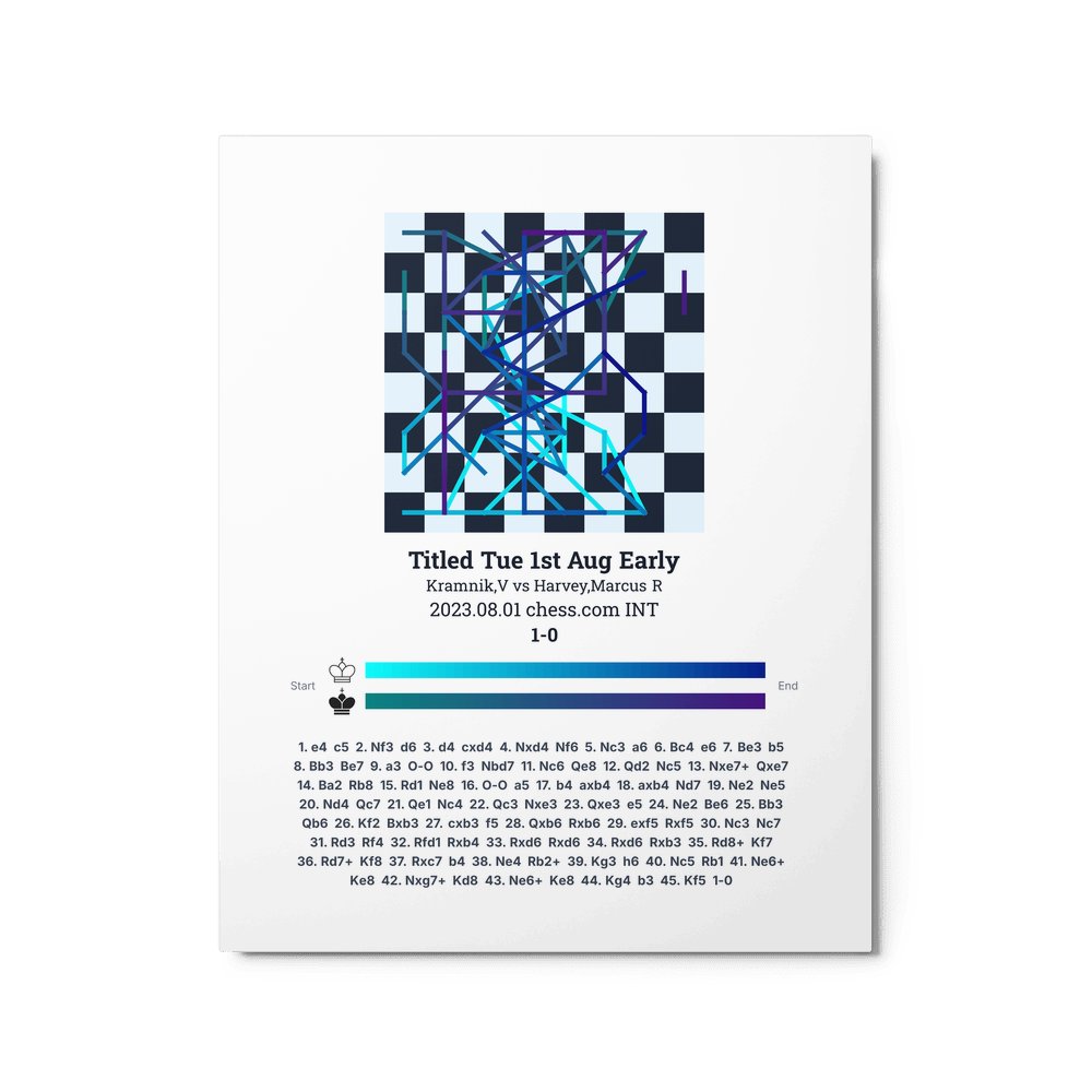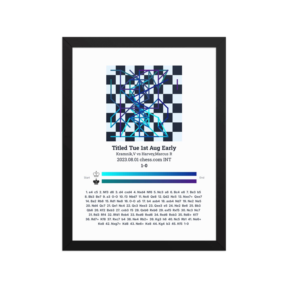 Museum-quality poster on thick, durable matte paper. A sharp, clean look for any chess visualisation.