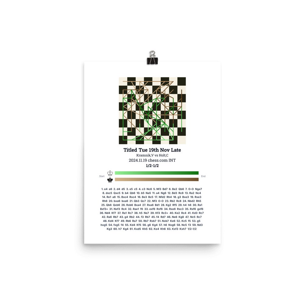 Museum-quality poster on thick, durable matte paper. A sharp, clean look for any chess visualisation.