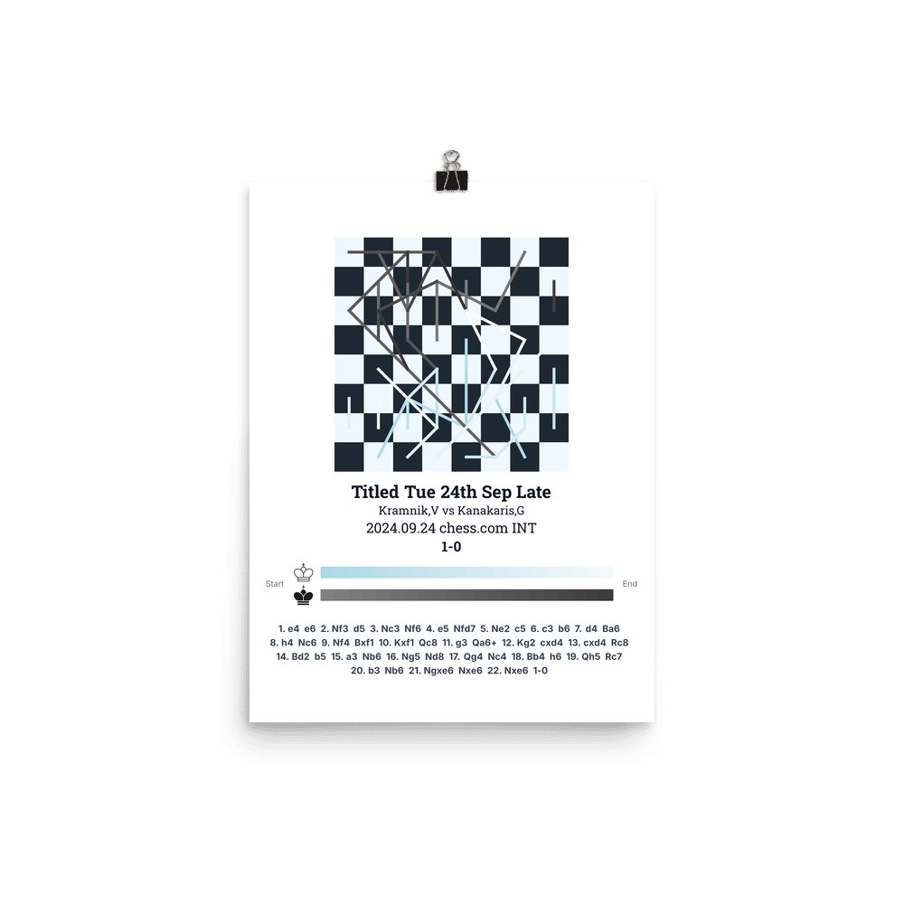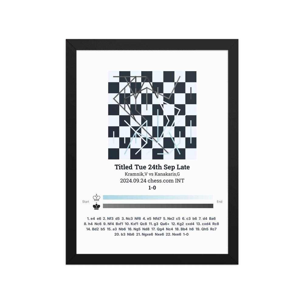 Museum-quality poster on thick, durable matte paper. A sharp, clean look for any chess visualisation.