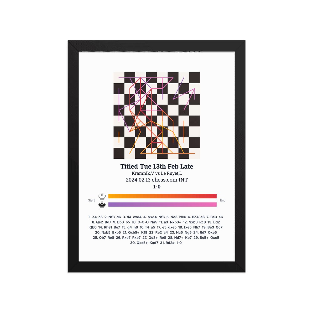 Museum-quality poster on thick, durable matte paper. A sharp, clean look for any chess visualisation.