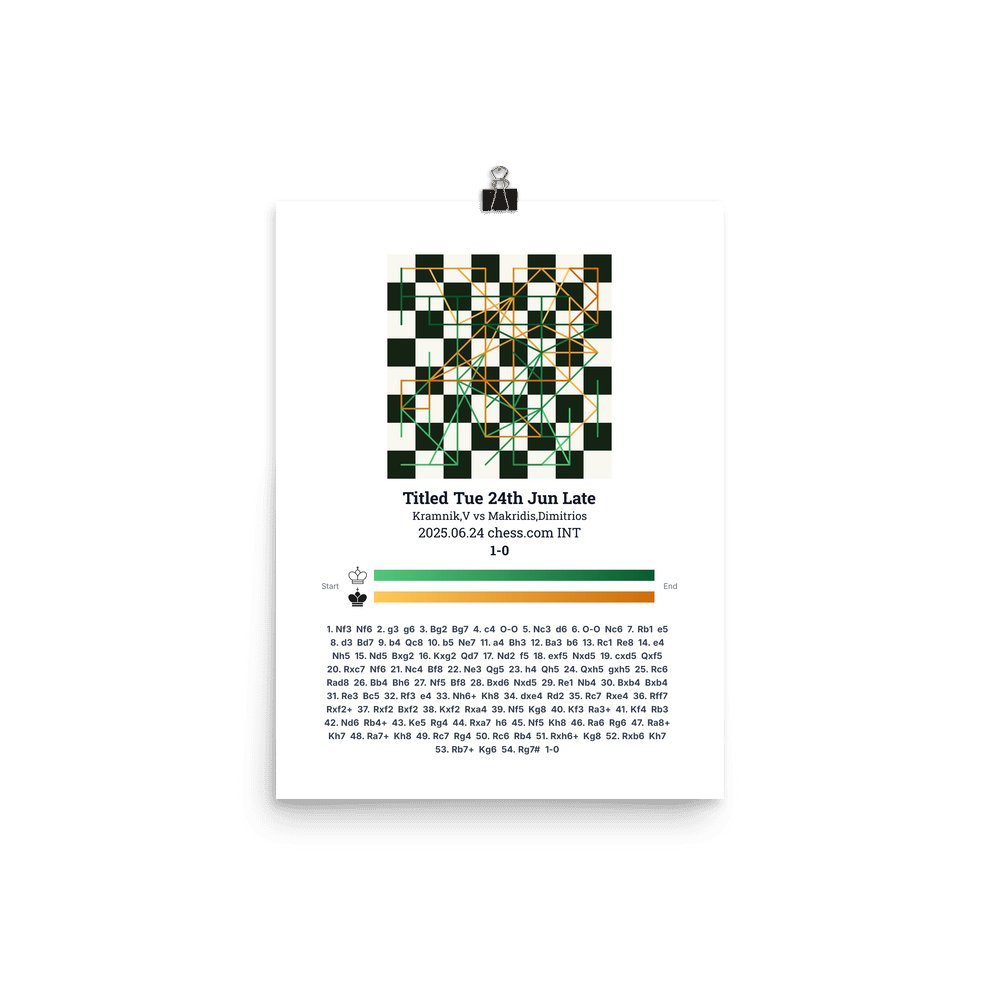 Museum-quality poster on thick, durable matte paper. A sharp, clean look for any chess visualisation.