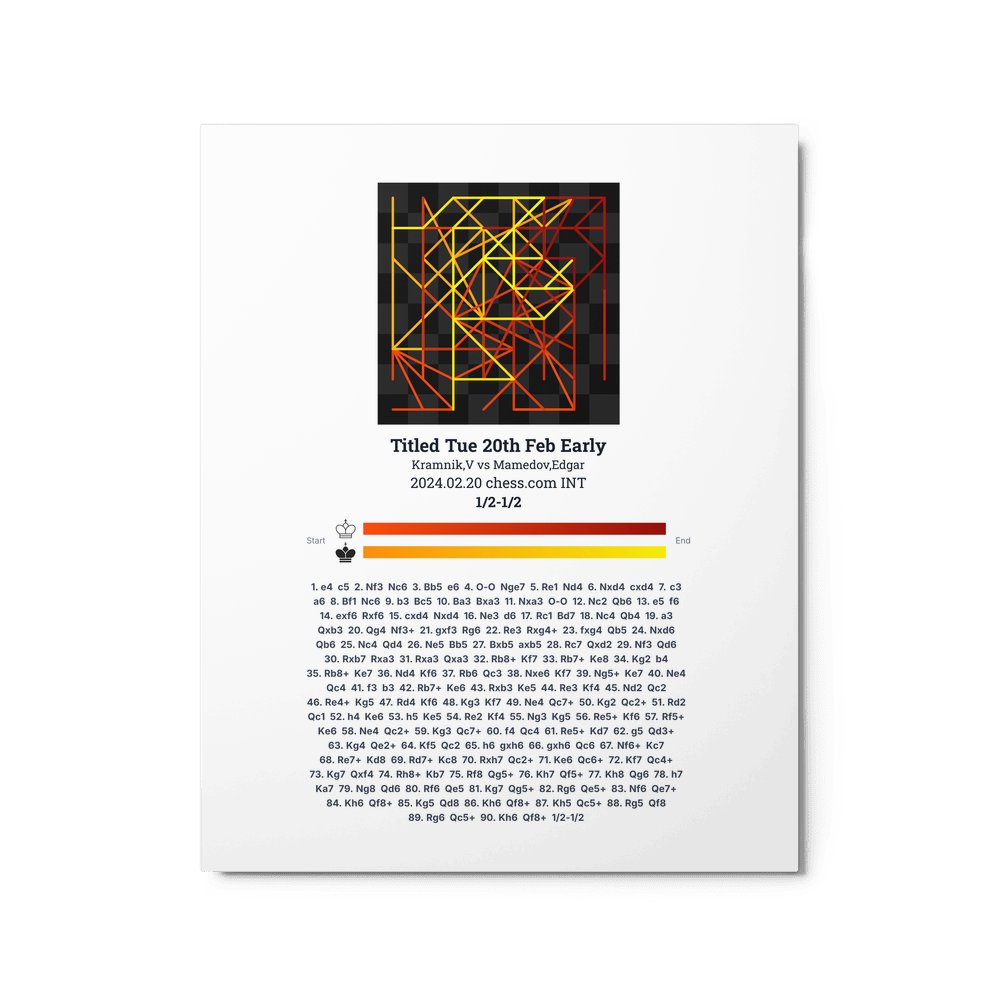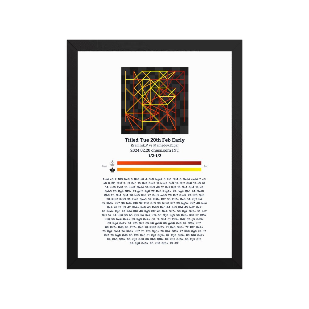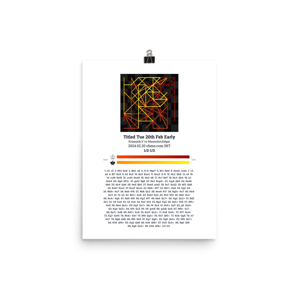 Museum-quality poster on thick, durable matte paper. A sharp, clean look for any chess visualisation.
