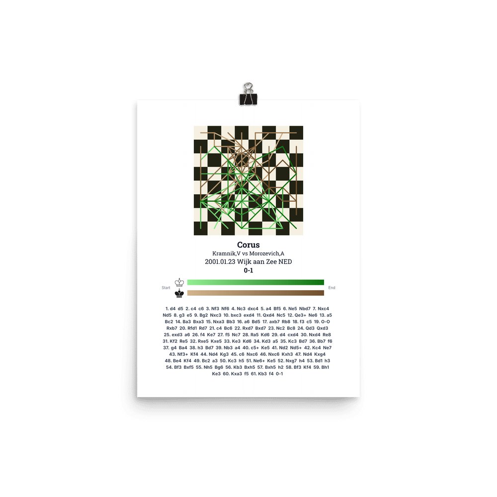 Museum-quality poster on thick, durable matte paper. A sharp, clean look for any chess visualisation.
