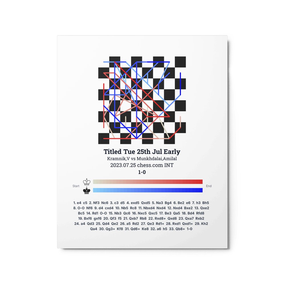 Museum-quality poster on thick, durable matte paper. A sharp, clean look for any chess visualisation.