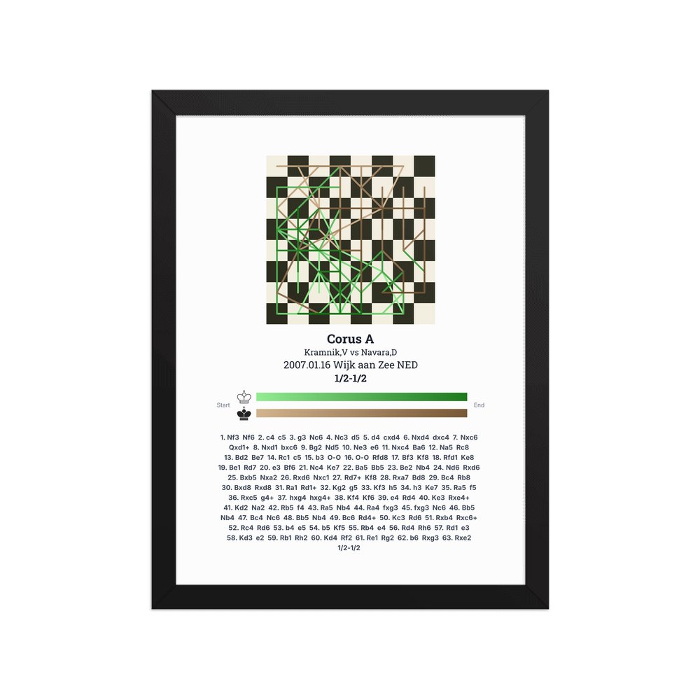 Museum-quality poster on thick, durable matte paper. A sharp, clean look for any chess visualisation.