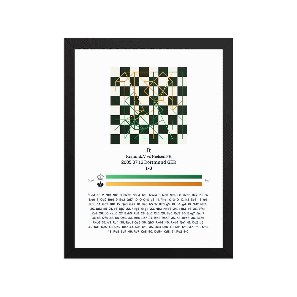 Museum-quality poster on thick, durable matte paper. A sharp, clean look for any chess visualisation.