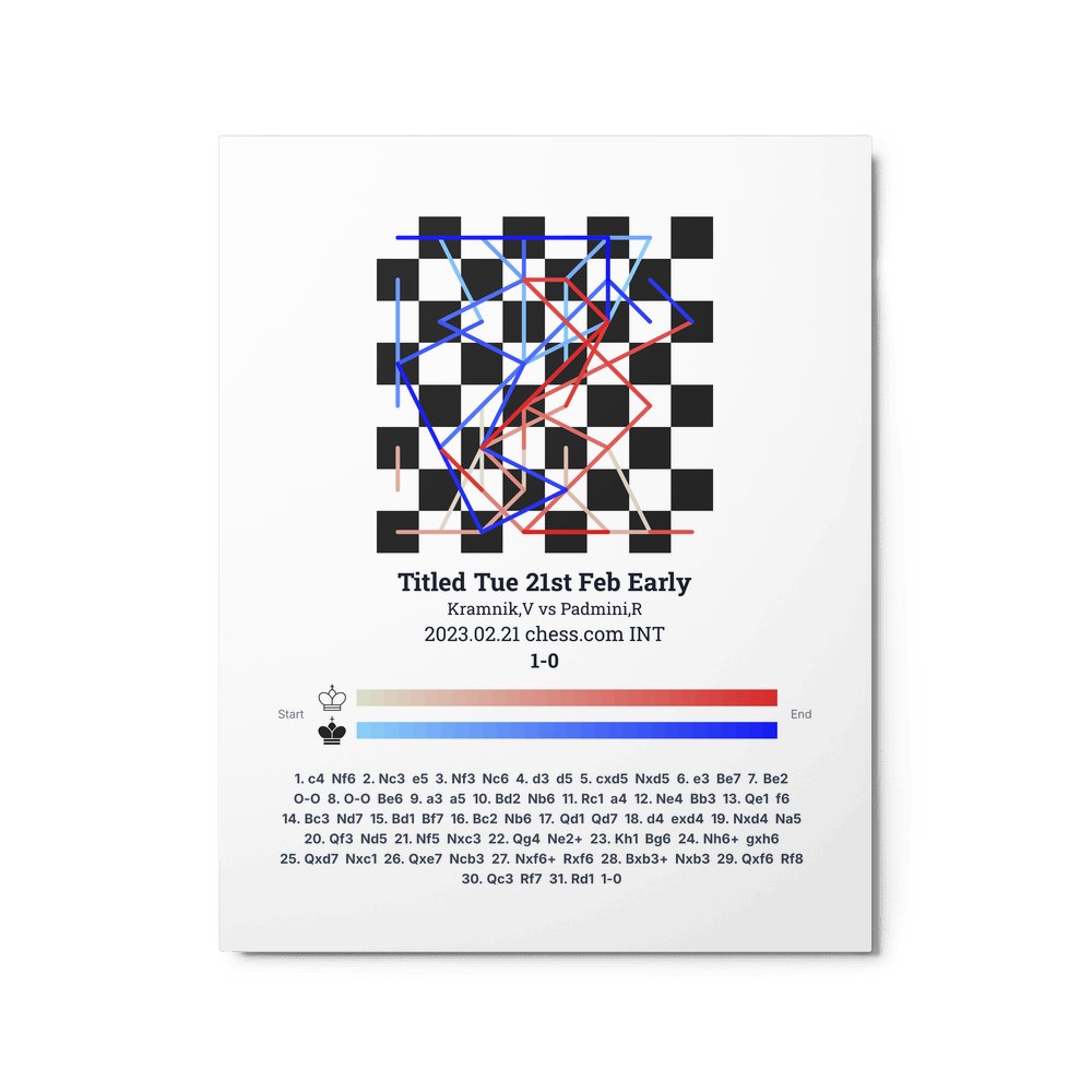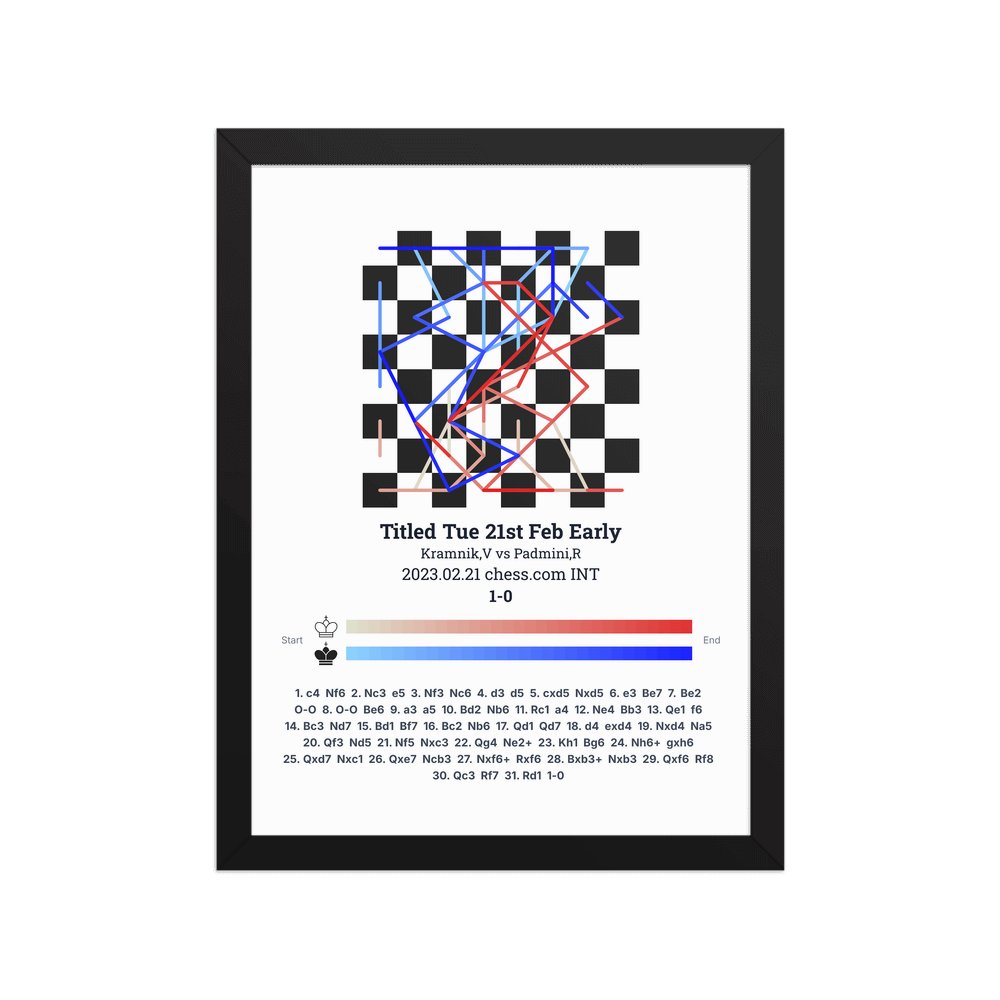 Museum-quality poster on thick, durable matte paper. A sharp, clean look for any chess visualisation.