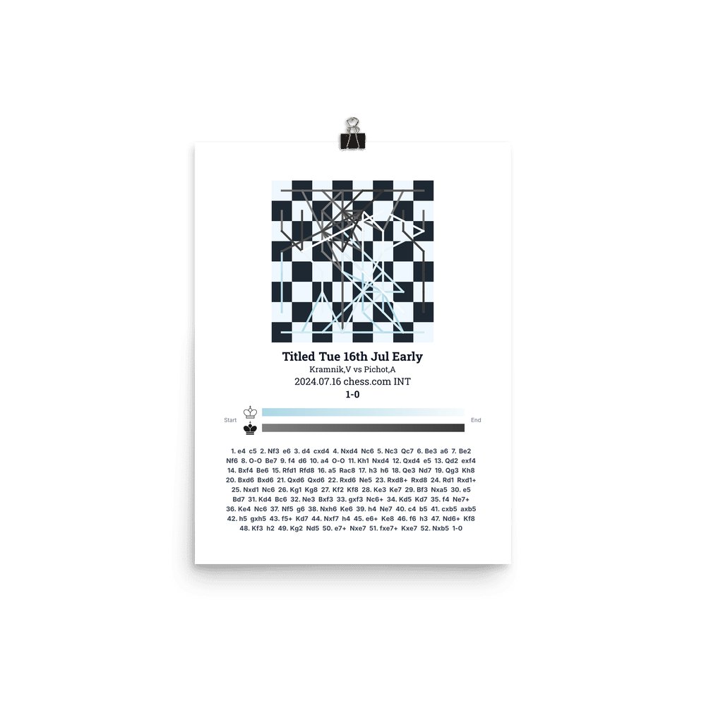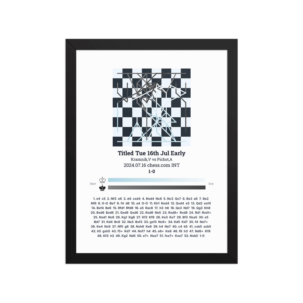 Museum-quality poster on thick, durable matte paper. A sharp, clean look for any chess visualisation.