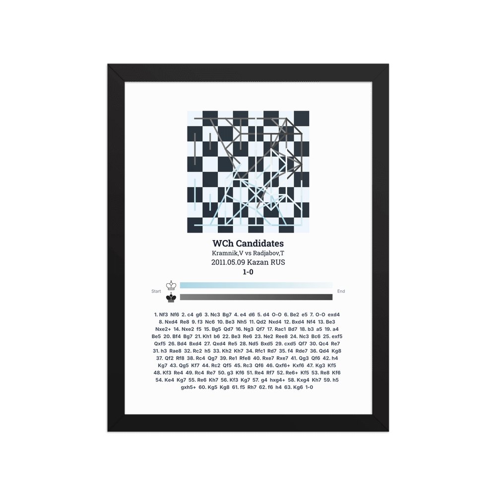 Museum-quality poster on thick, durable matte paper. A sharp, clean look for any chess visualisation.