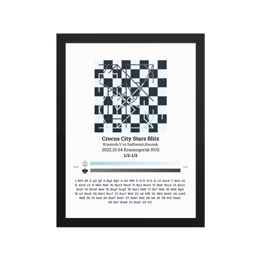 Museum-quality poster on thick, durable matte paper. A sharp, clean look for any chess visualisation.