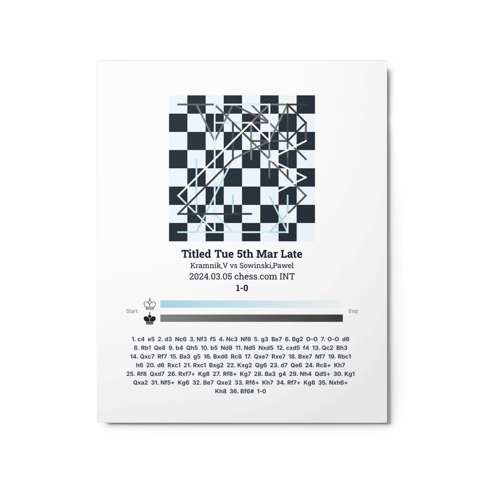 Museum-quality poster on thick, durable matte paper. A sharp, clean look for any chess visualisation.