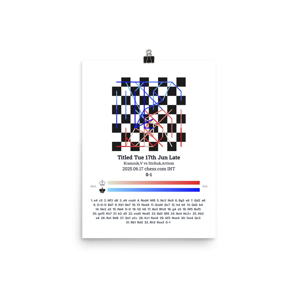 Museum-quality poster on thick, durable matte paper. A sharp, clean look for any chess visualisation.