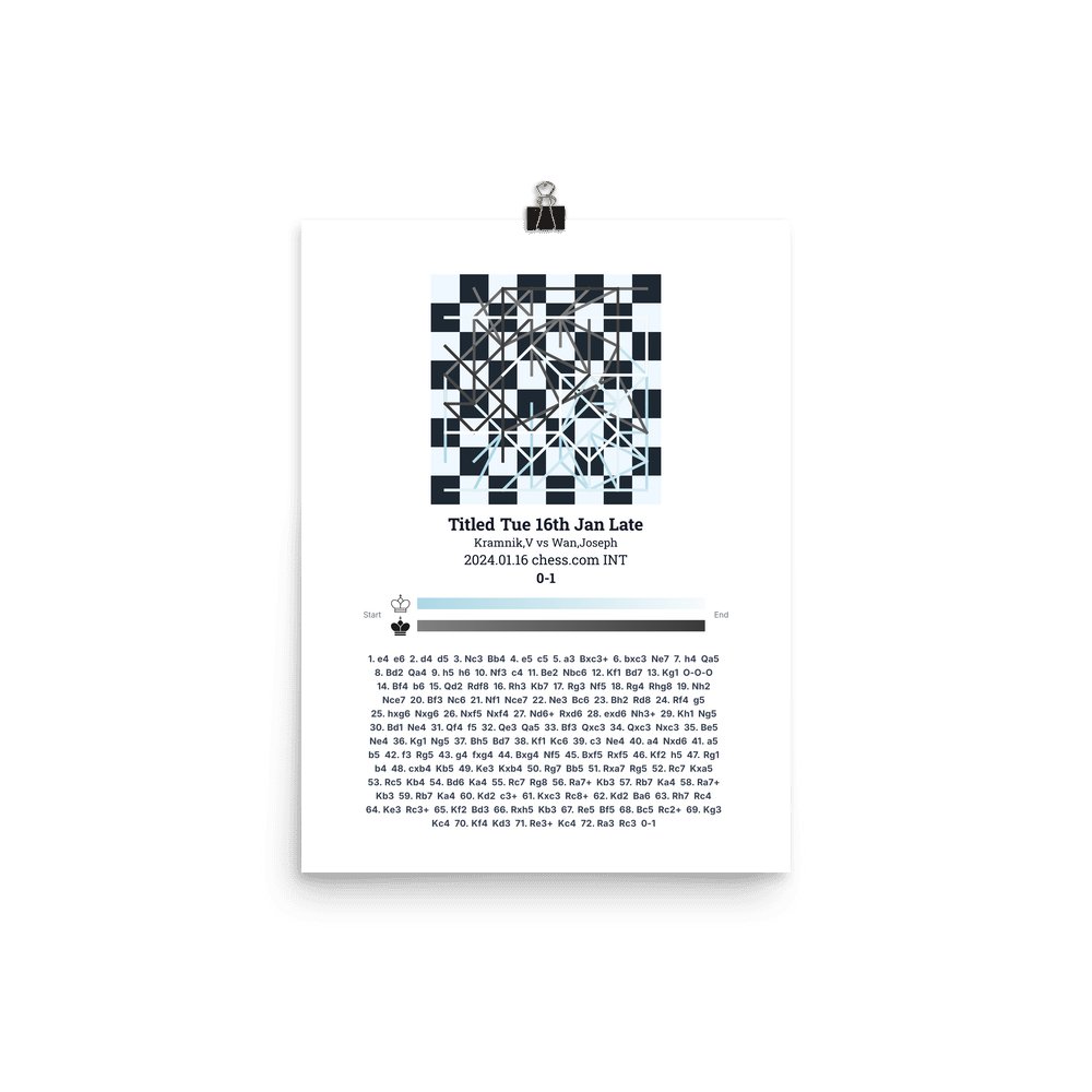 Museum-quality poster on thick, durable matte paper. A sharp, clean look for any chess visualisation.