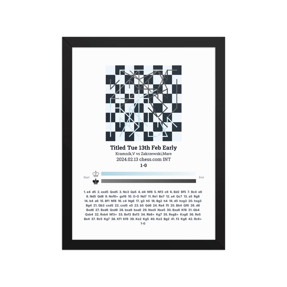 Museum-quality poster on thick, durable matte paper. A sharp, clean look for any chess visualisation.
