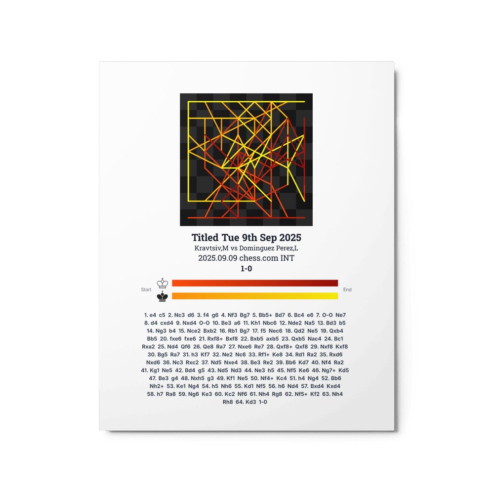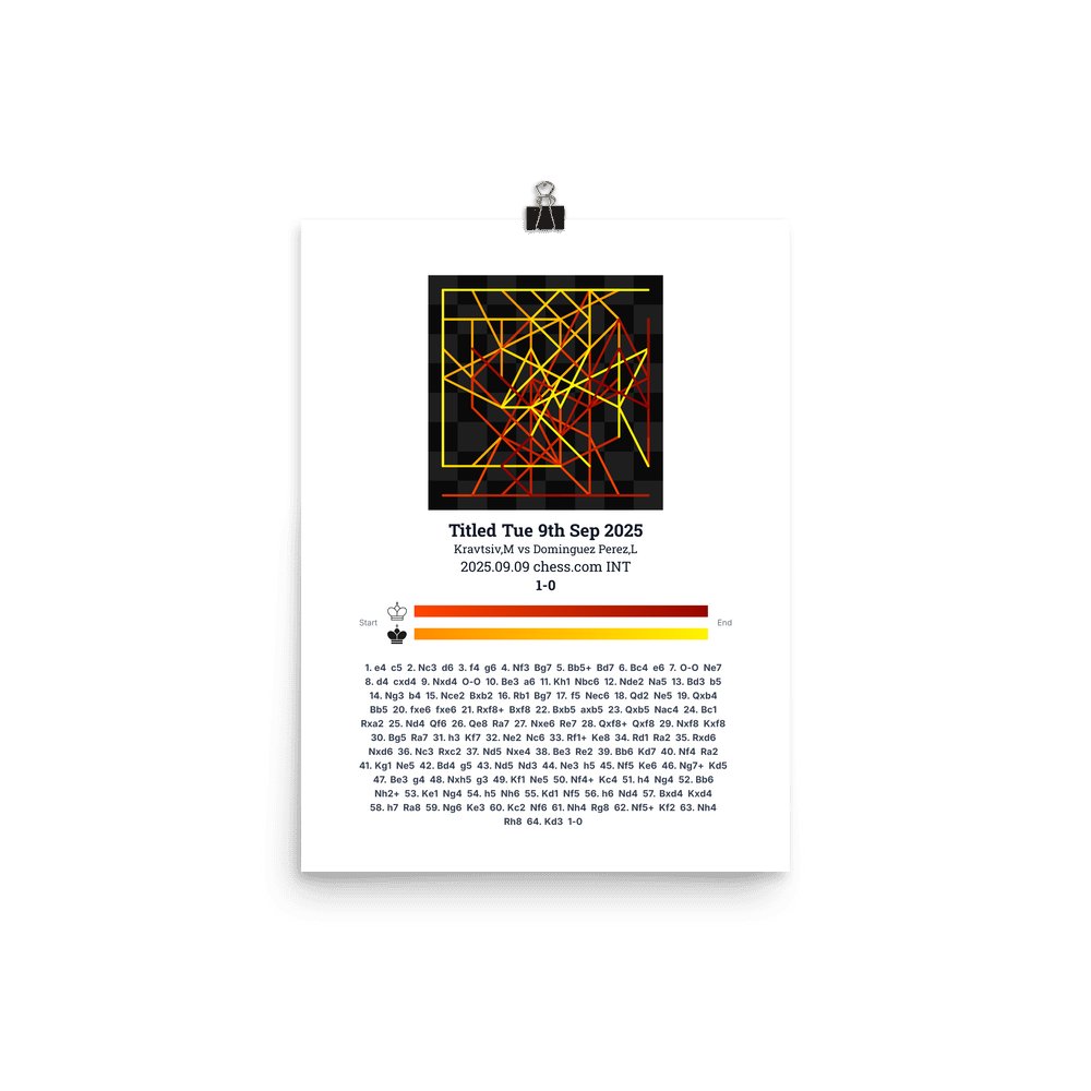 Museum-quality poster on thick, durable matte paper. A sharp, clean look for any chess visualisation.