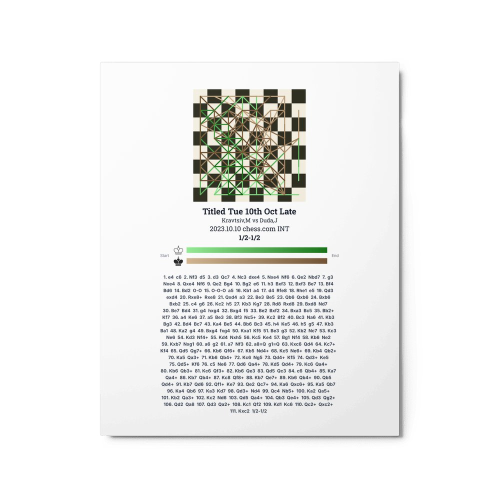 Museum-quality poster on thick, durable matte paper. A sharp, clean look for any chess visualisation.