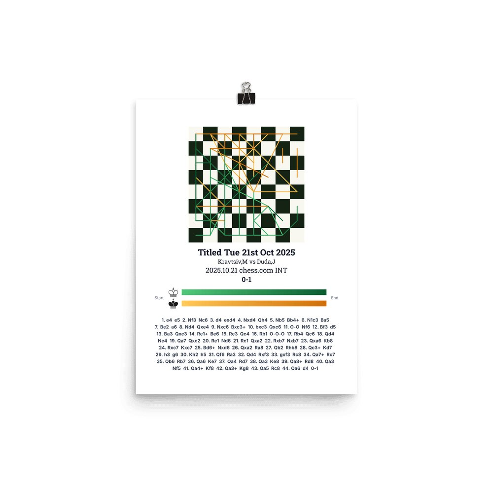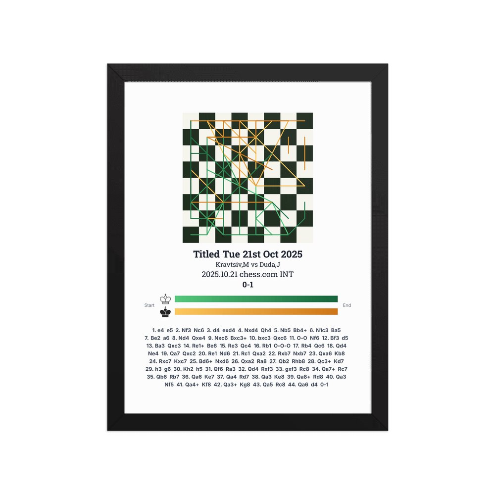 Museum-quality poster on thick, durable matte paper. A sharp, clean look for any chess visualisation.