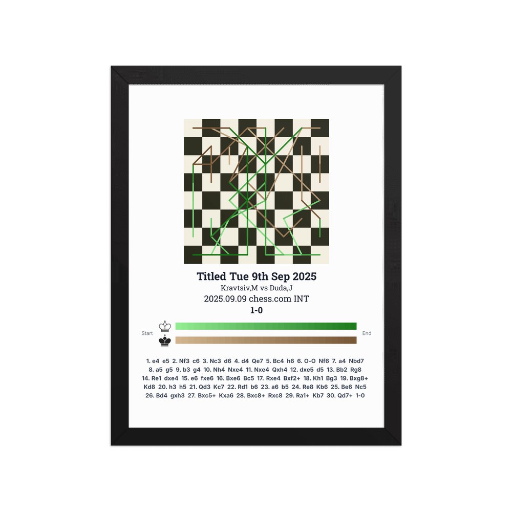 Museum-quality poster on thick, durable matte paper. A sharp, clean look for any chess visualisation.