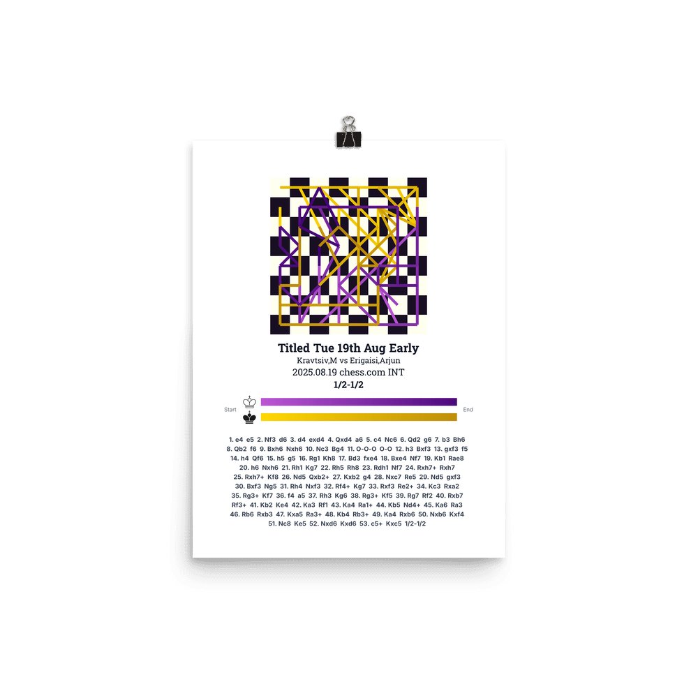 Museum-quality poster on thick, durable matte paper. A sharp, clean look for any chess visualisation.
